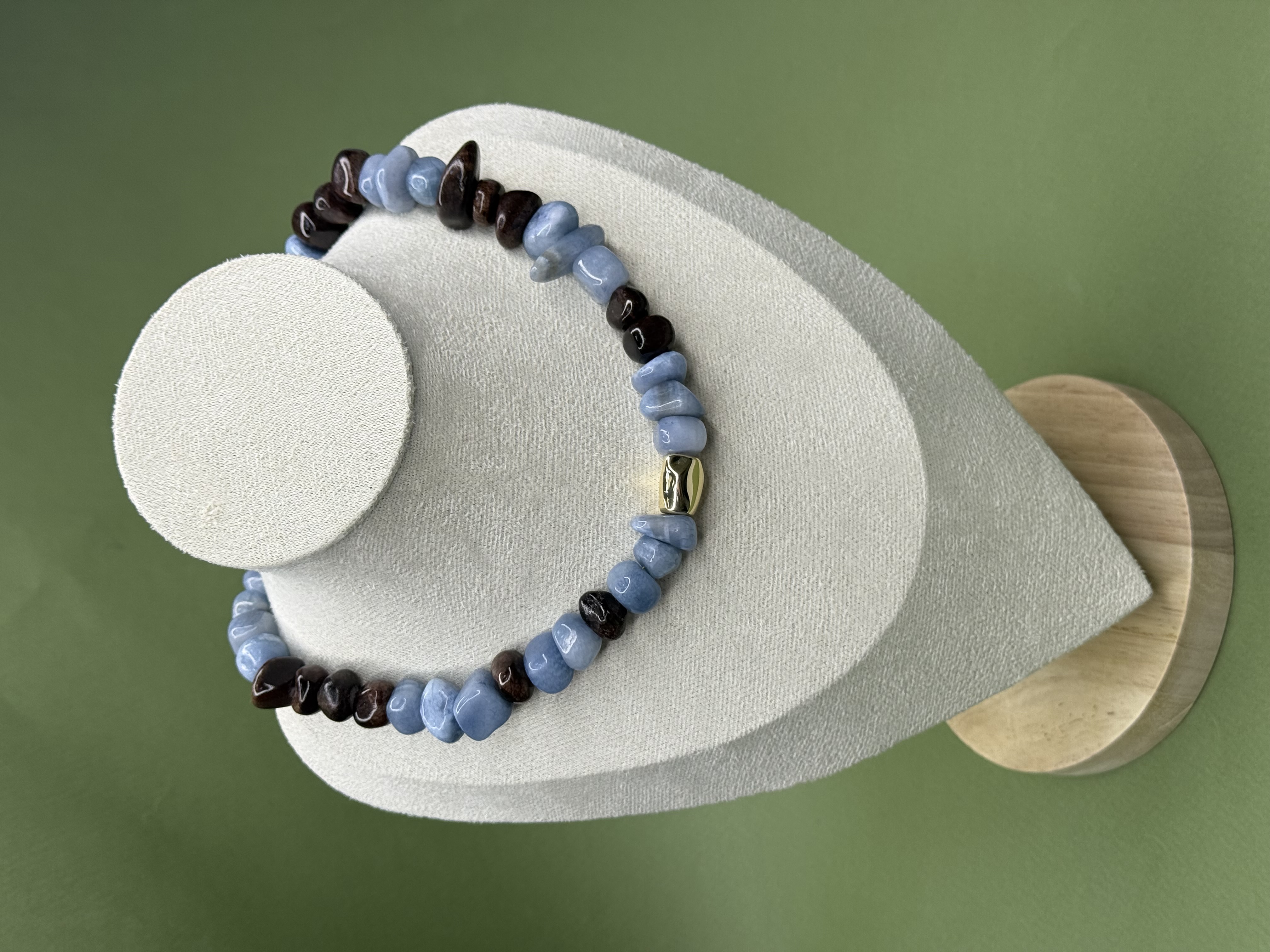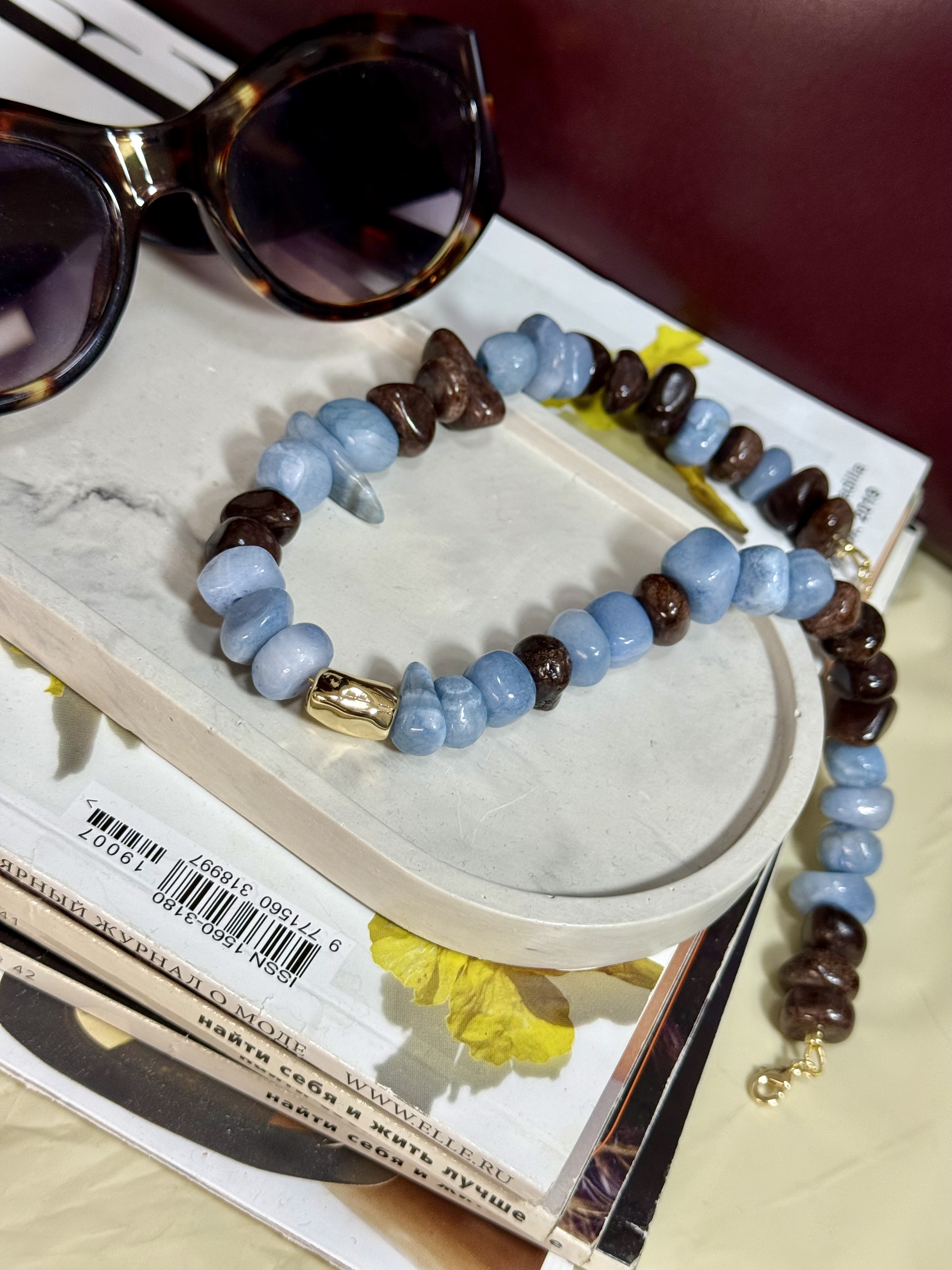 Лаконичный дизайн подчёркивает природную красоту камня, позволяя ему звучать чисто и честно. Колье выглядит сдержанно и современно, легко вписывается в минималистичные образы и становится тонким акцентом, говорящим о вкусе и характере своей обладательницы.