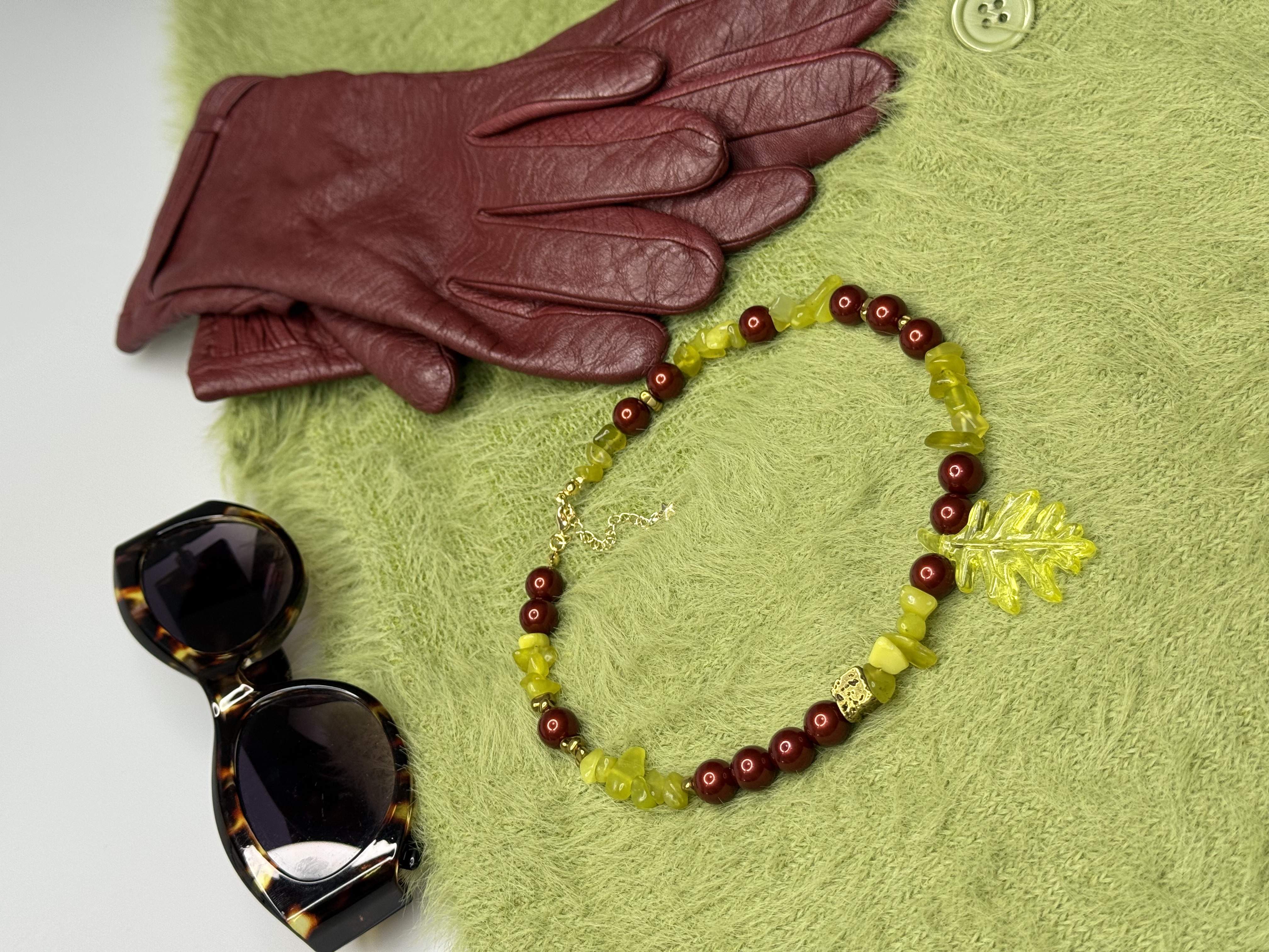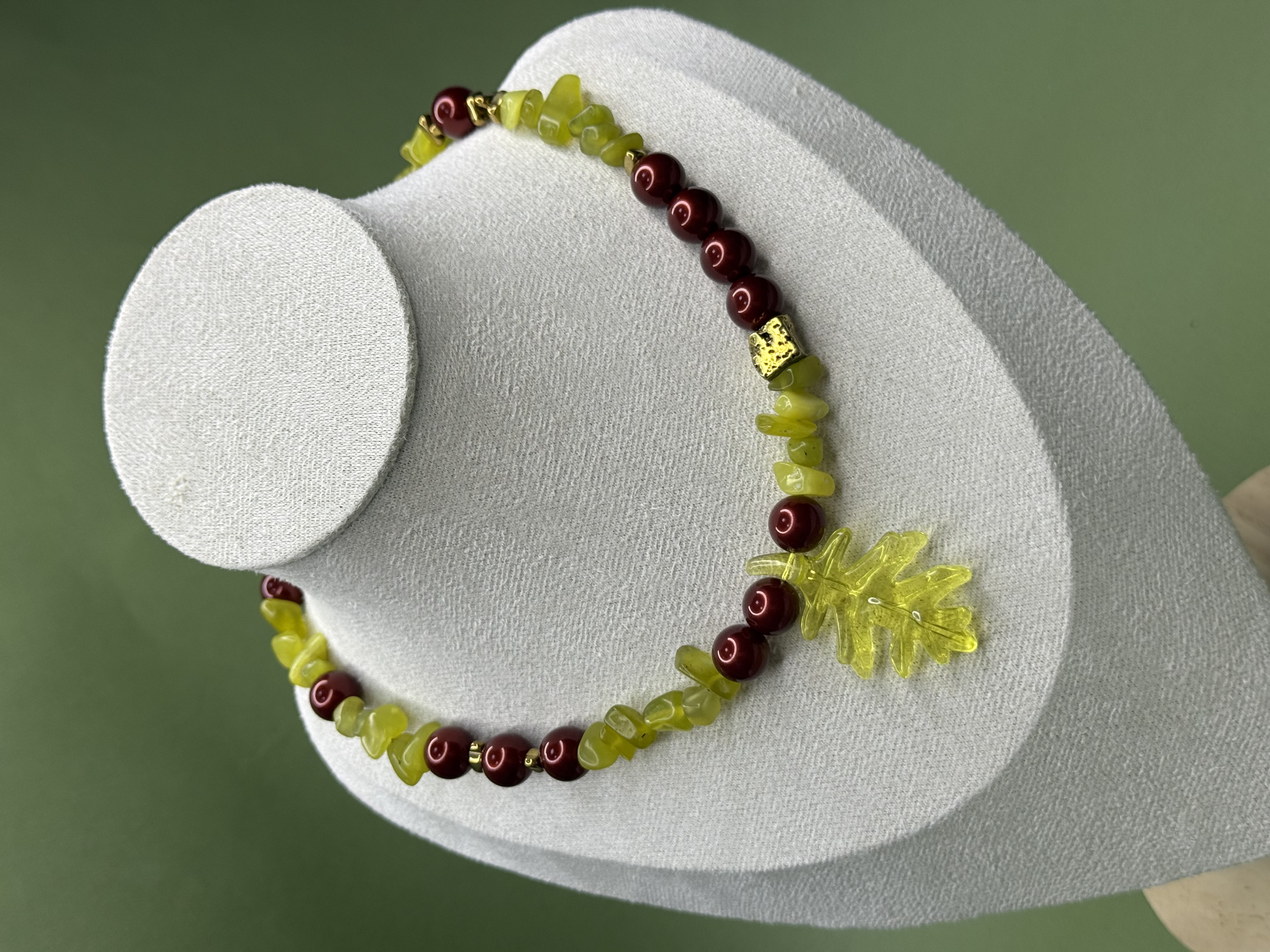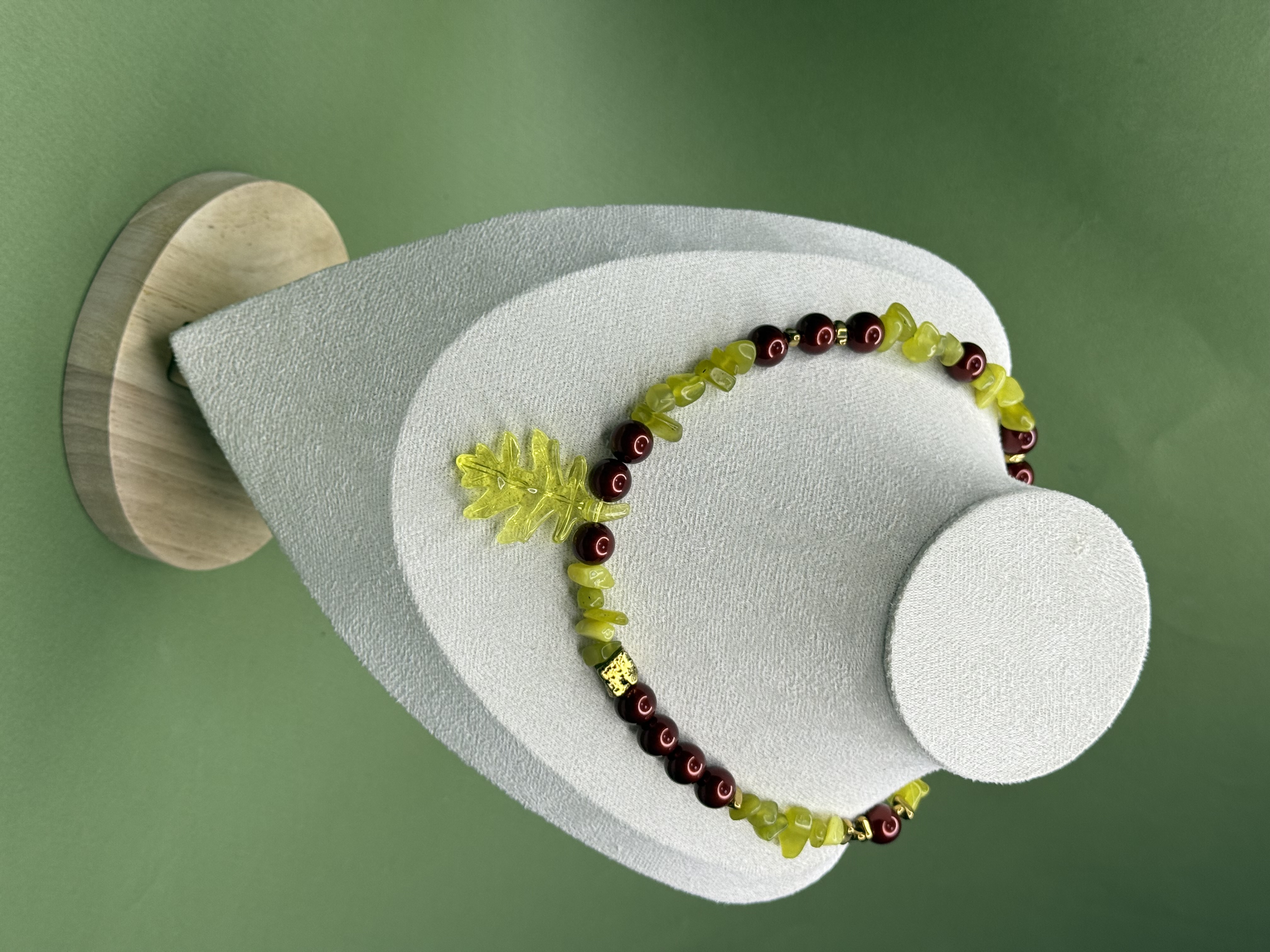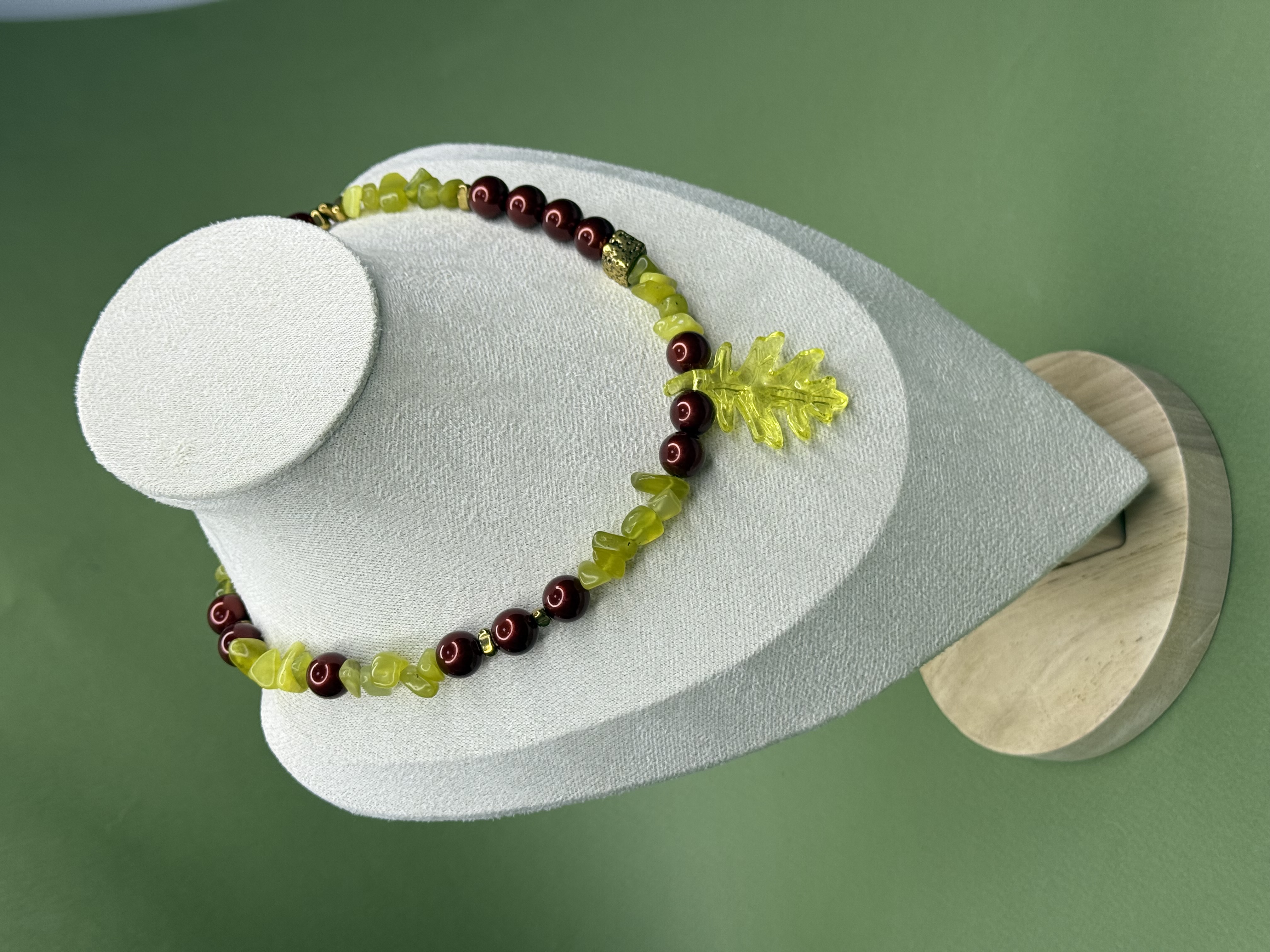 Акцентный подвес в форме листа становится визуальным и смысловым центром колье — символом жизни, корней и естественной красоты. Украшение выглядит выразительно, но гармонично, легко вписывается в повседневный образ и одновременно остаётся акцентным.